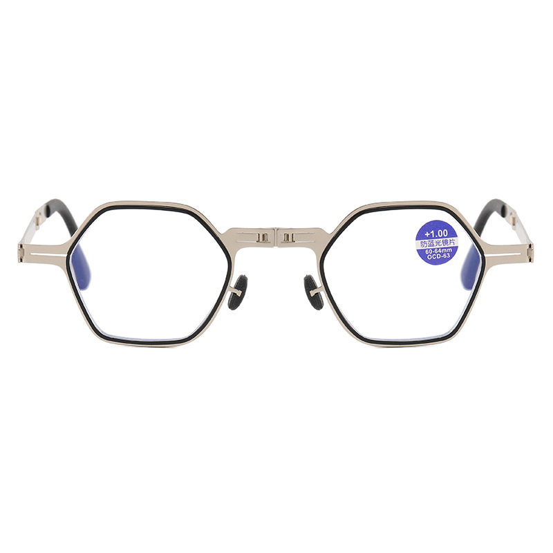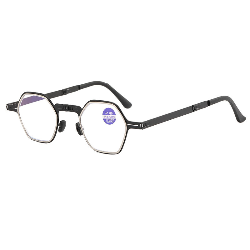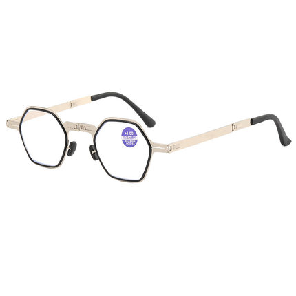 2512新款男女通用防蓝光老花镜便携式折叠圆框不锈钢无螺丝眼镜