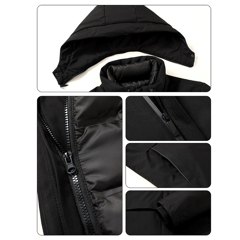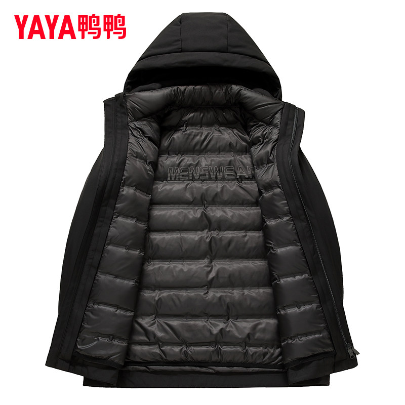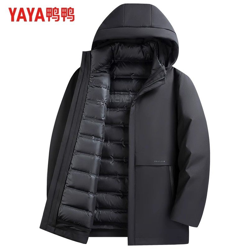 鸭鸭可拆卸帽中长款商务羽绒服