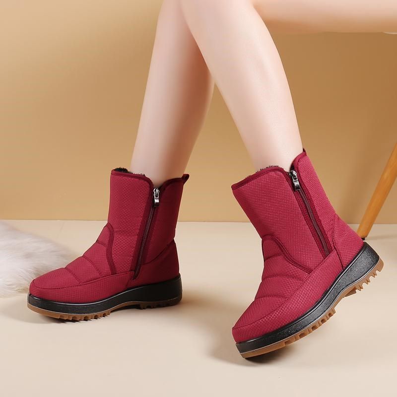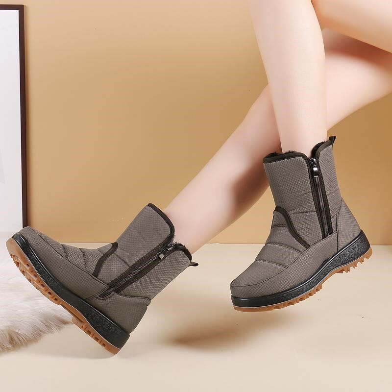 新款防水雪地靴加绒加厚冬季中筒女鞋棉鞋妈妈鞋棉靴软底防滑保暖