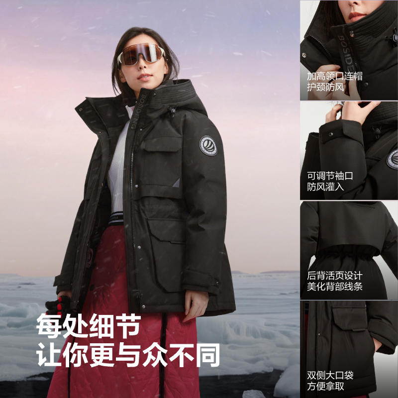 波司登2025新款冬季鹅绒羽绒服女士连帽短款时尚极寒宽松工装保暖