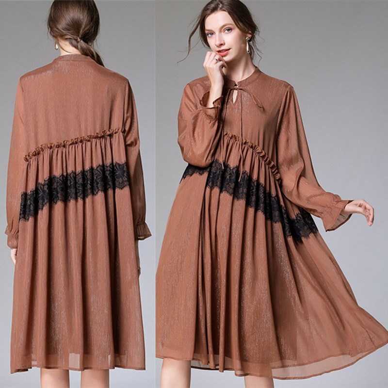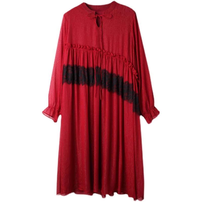 大码女装2025春秋新款胖mm时尚显瘦中长款韩版蕾丝雪纺连衣裙子女