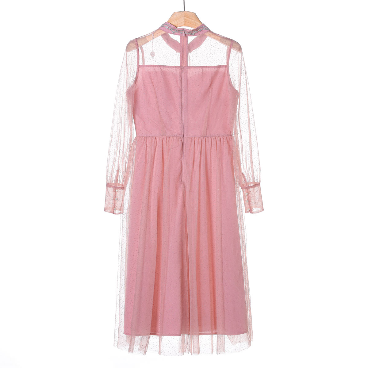 专柜1099【蕾】春装 盘扣刺绣镂空串珠网纱连衣裙002