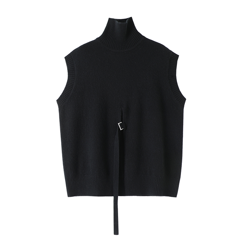 版型狂赞!!前开叉调节扣高领羊绒背心女纯羊绒毛衣马甲坎肩加厚