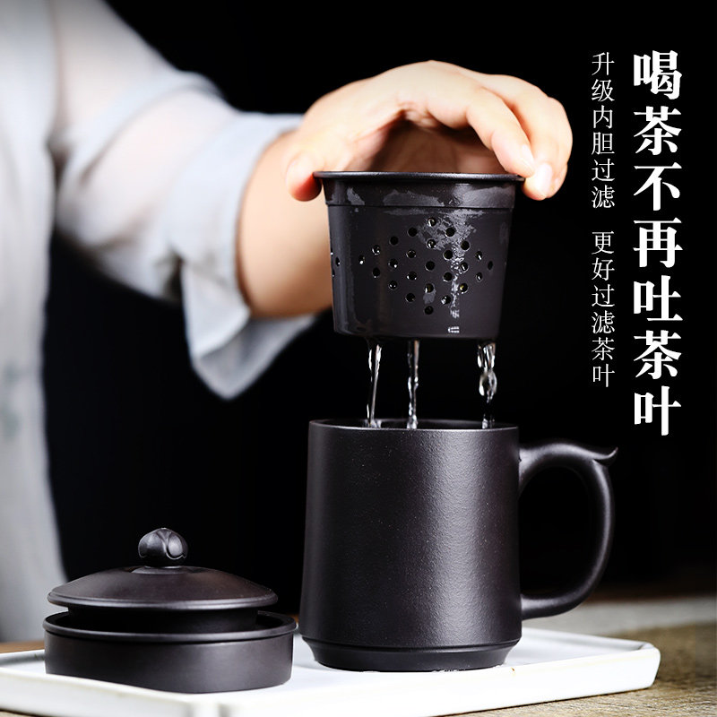 宜兴紫砂杯男士纯全手工紫砂茶杯原矿茶水分离大容量正品高端杯子