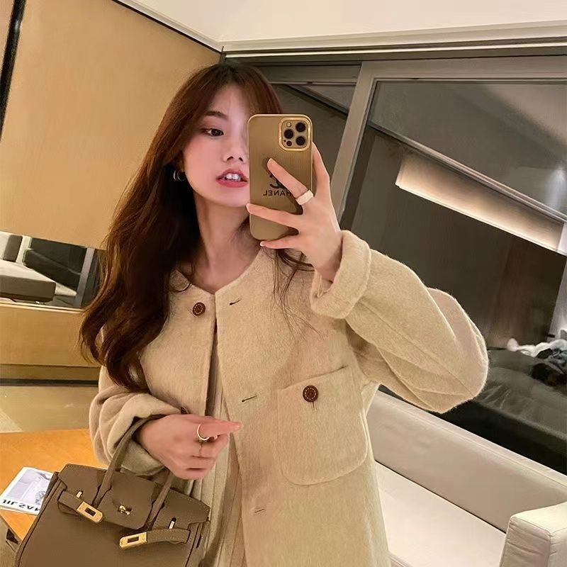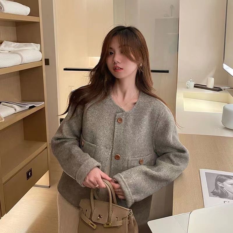 秋季新款长毛短款双面羊毛大衣女小个子设计感小香风羊毛呢外套潮