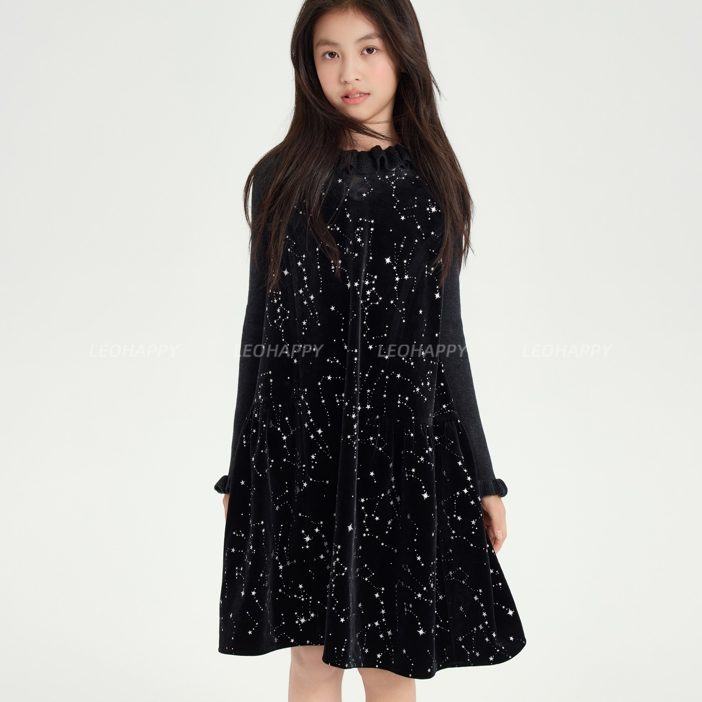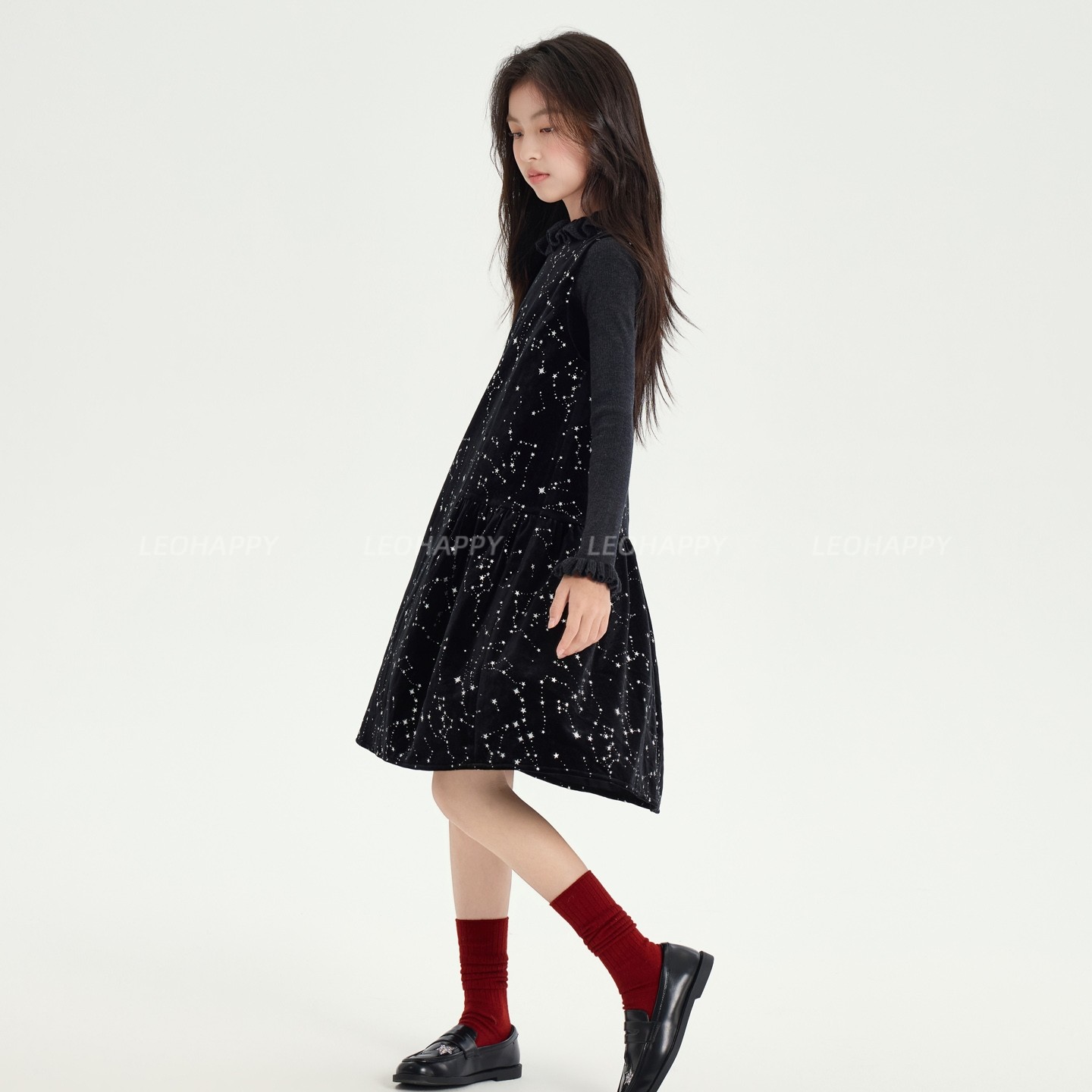 LEOHAPPY女童连衣裙冬季儿童公主裙新年丝绒背心裙大童生日礼服裙