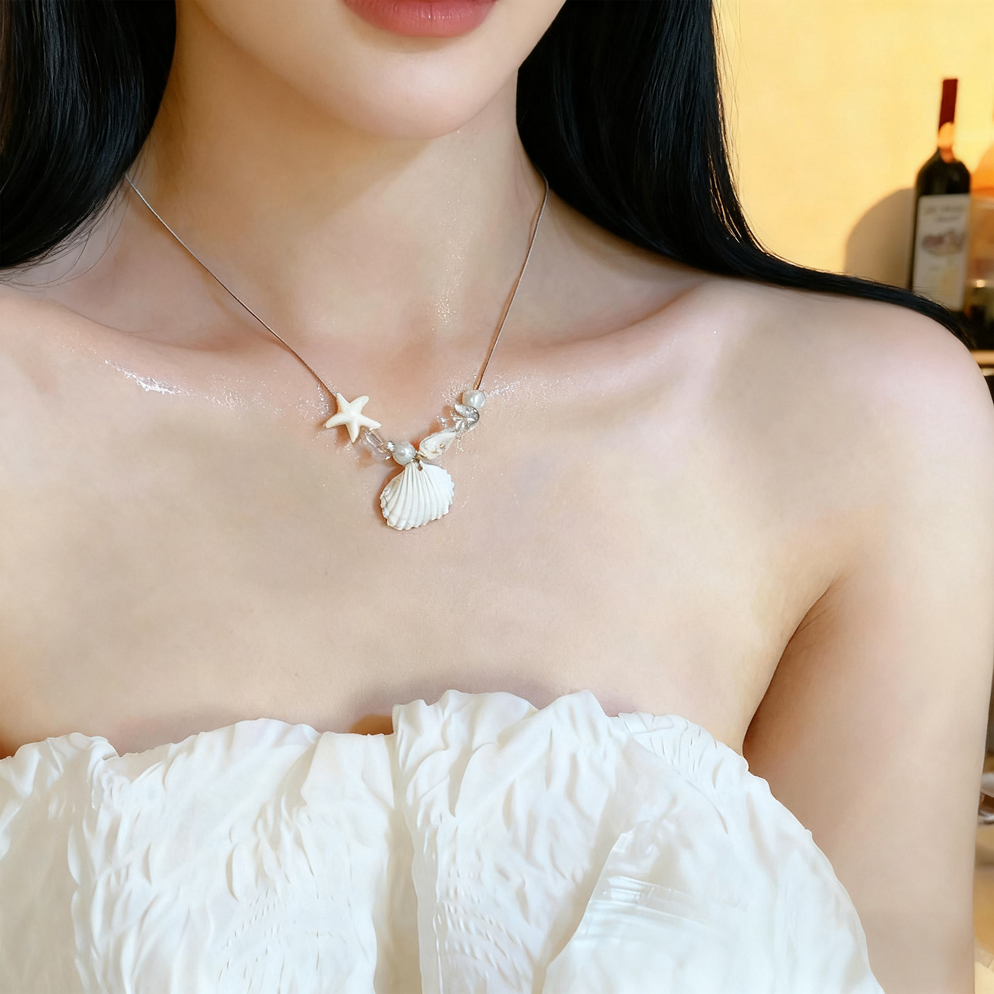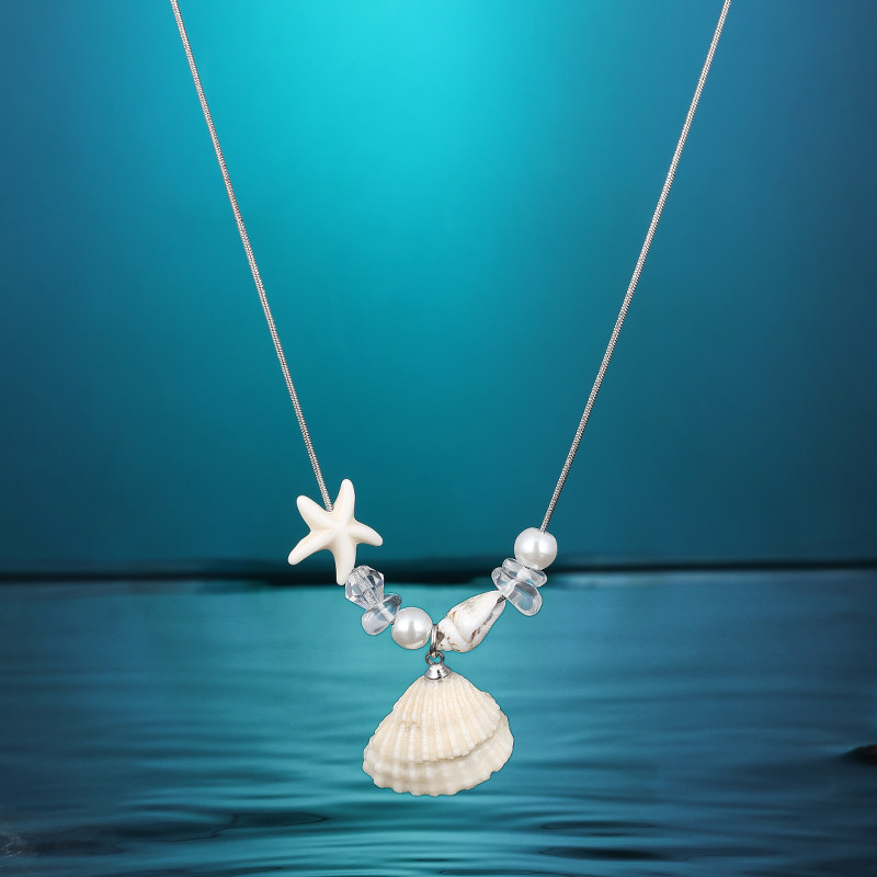 海边度假风海星贝壳吊坠夏日项链女配裙子装饰氛围感长款挂脖配饰