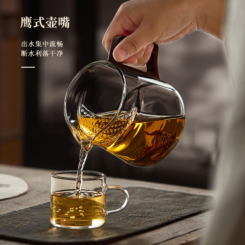 耐热月牙茶壶茶漏过滤一体玻璃泡茶壶绿茶分茶器茶水分离公道杯