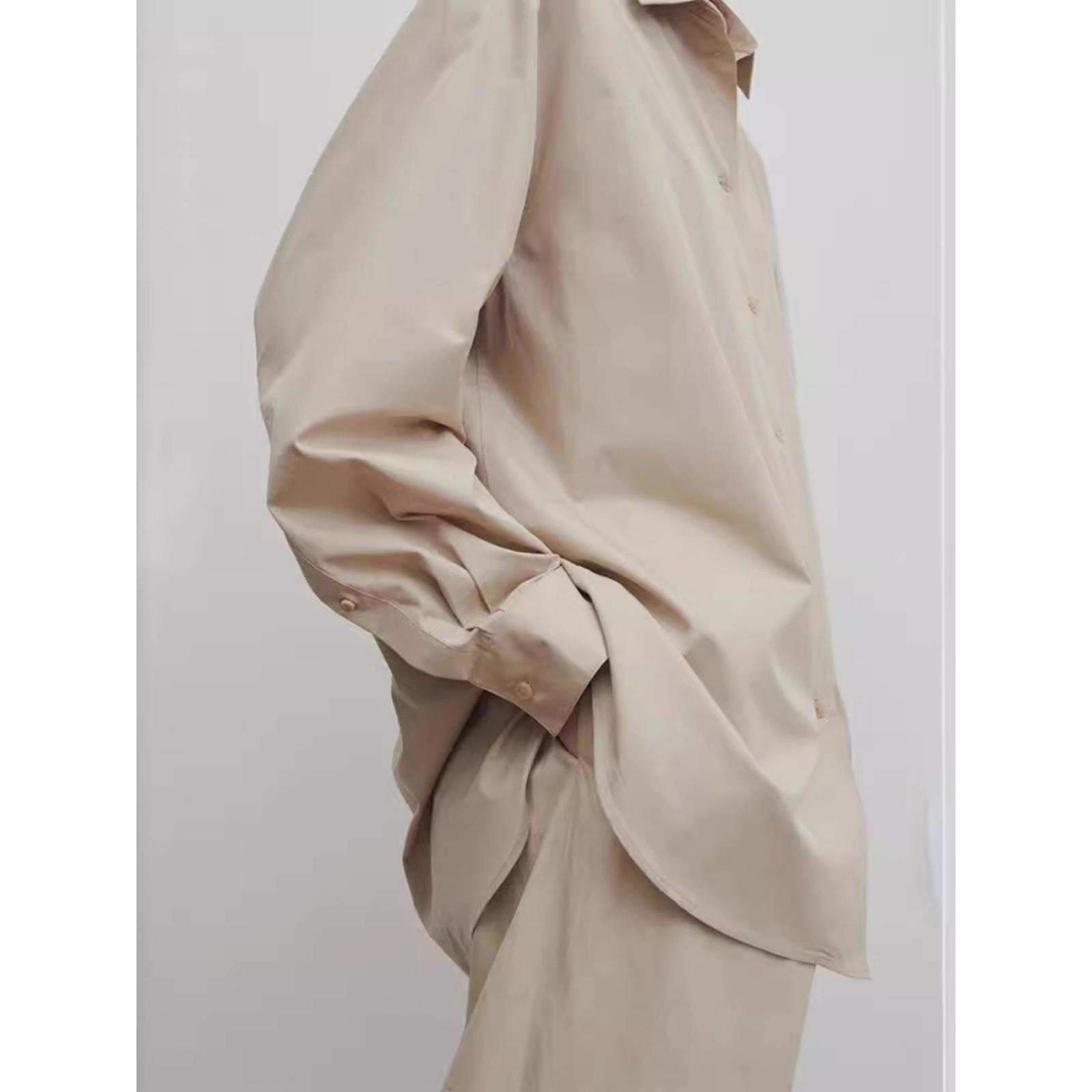 Th~Row衬衫女2024春秋季宽松极简通勤长袖小翻领精梳洗水纯棉衬衣