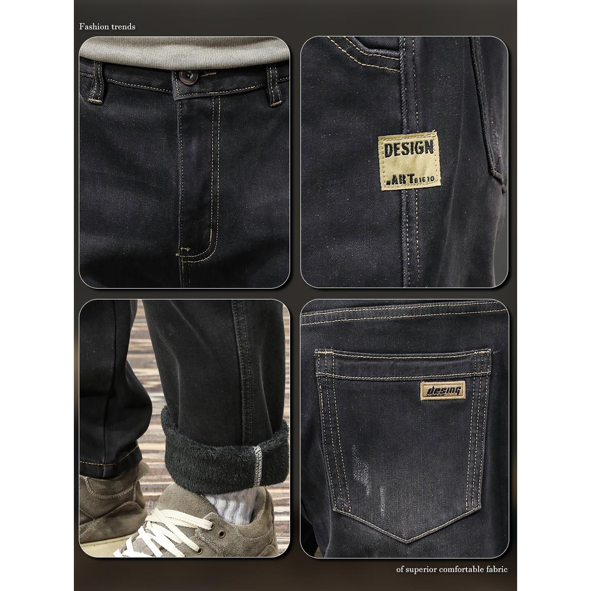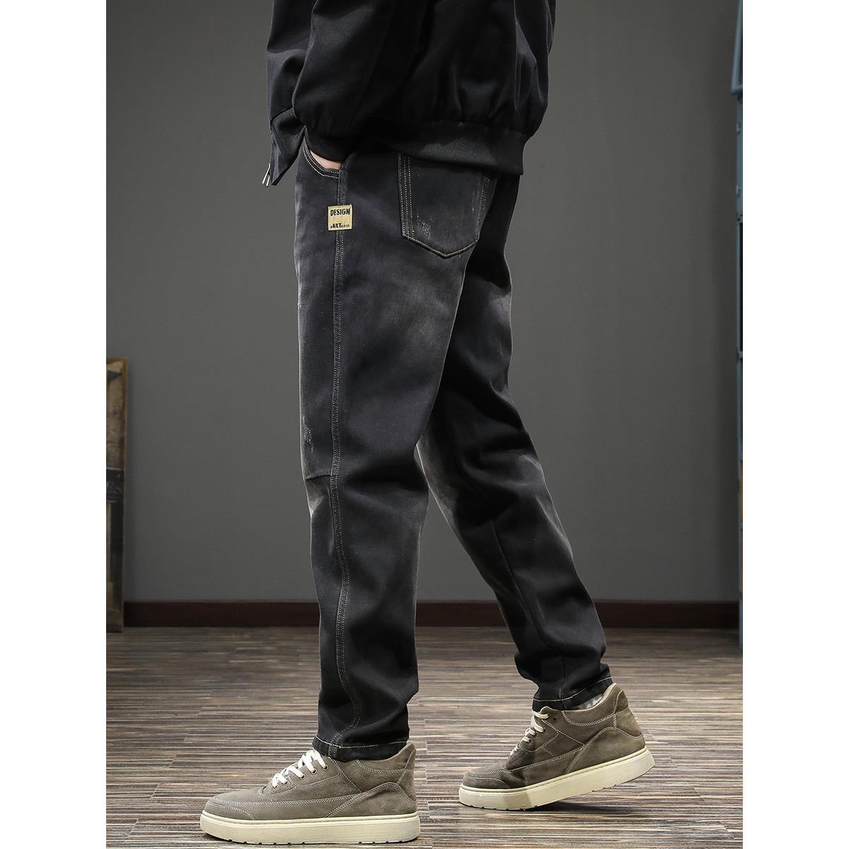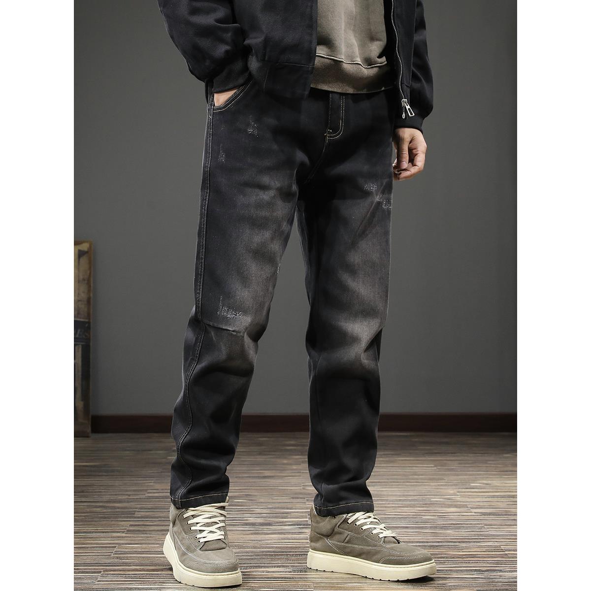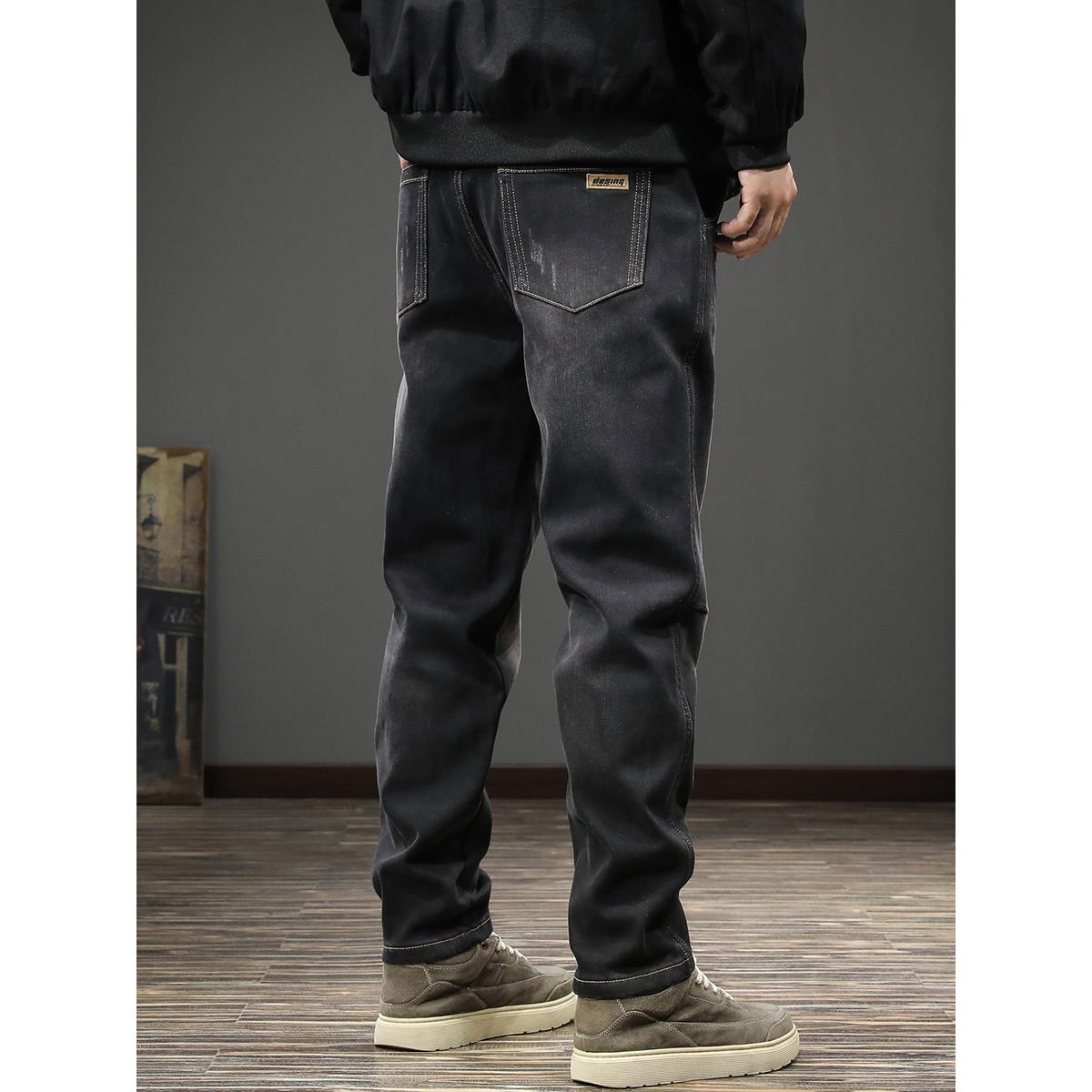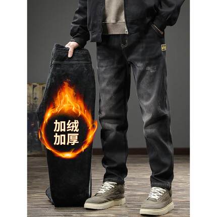 冬季加绒加厚复古水洗潮牌牛仔裤男宽松直筒痞帅大码重磅哈伦长裤