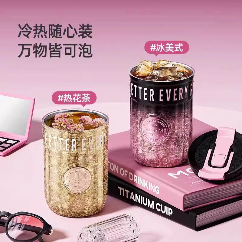 GERM钛杯保温杯女士2025新款高颜值泡茶杯便携吸管咖啡杯生日礼物