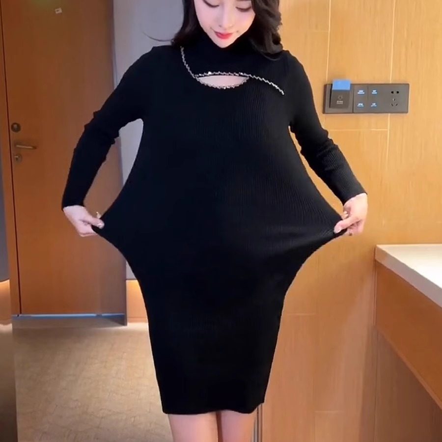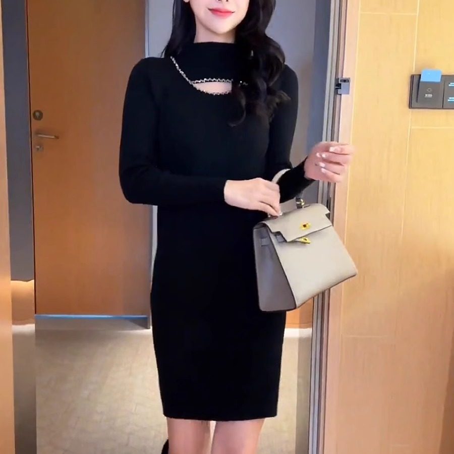 高级感针织连衣裙女秋冬2025新款加厚修身显瘦中长款内搭毛衣裙子