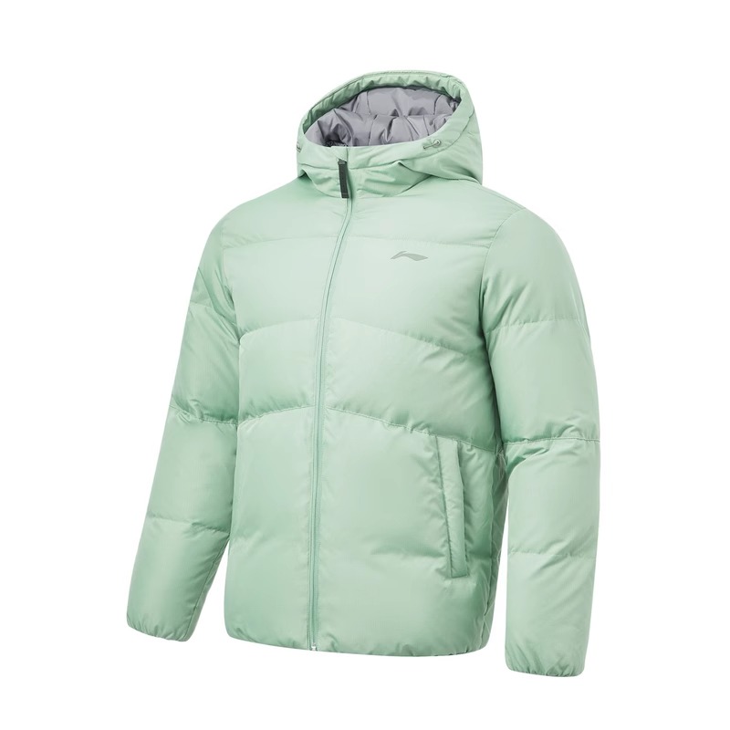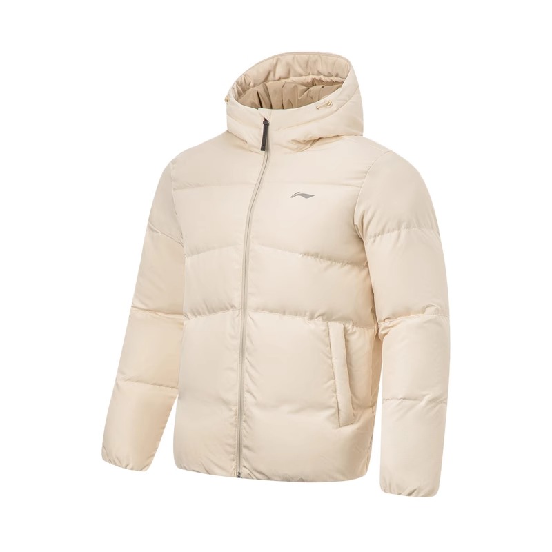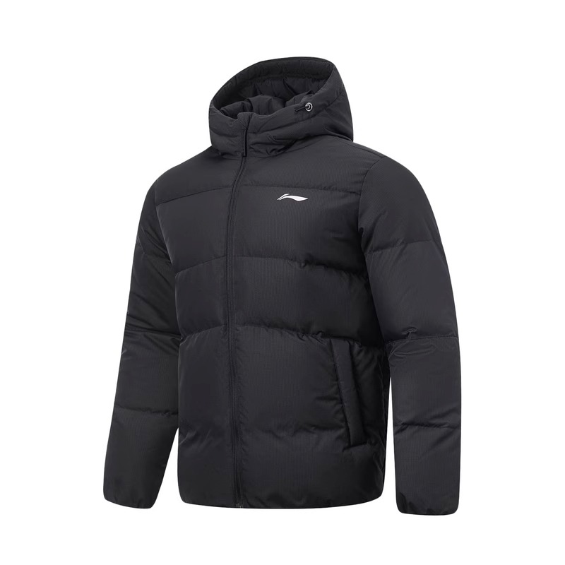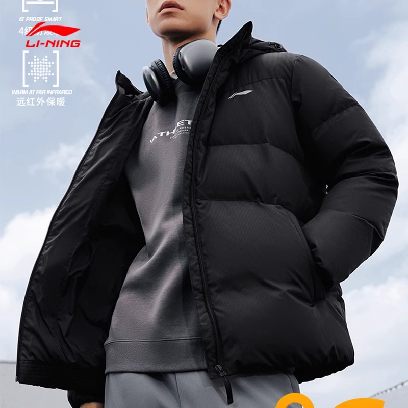 李宁男子跑训系列短款羽绒服防泼水加厚保暖常规连帽外套AYMT061