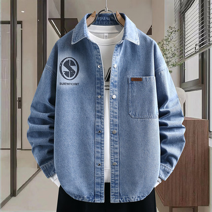 2026新款牛仔外套青少年翻领帅气宽松夹克大童男孩初高中学生褂子