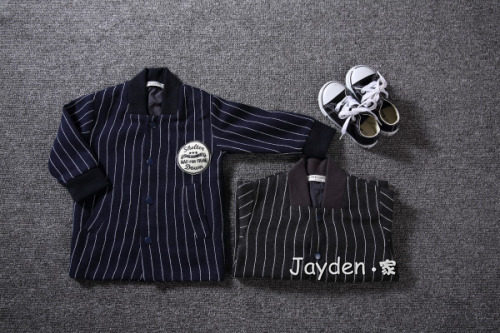 春季新款韩版儿童男女宝宝竖条纹棒球服夹克中长款外套儿童开衫