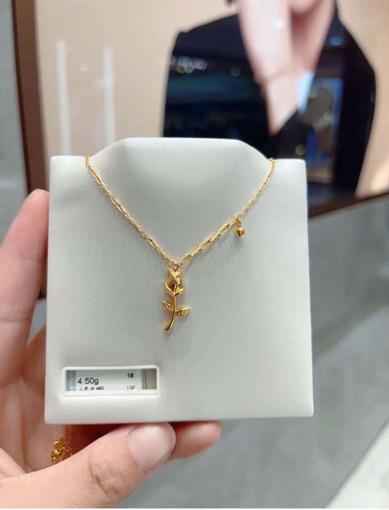 周大福代购 足金复古玫瑰花吊坠黄金项链新款 克减80计价 F229529