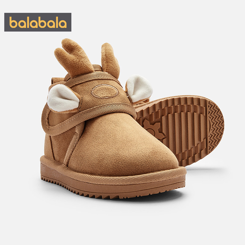 巴拉巴拉男童女童雪地靴儿童加绒短靴冬季新款童鞋宝宝靴子棉鞋厚