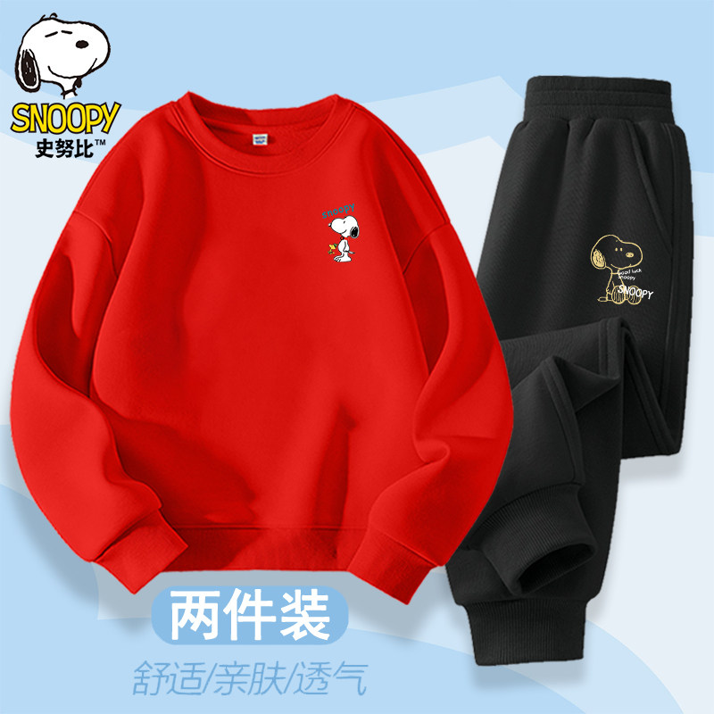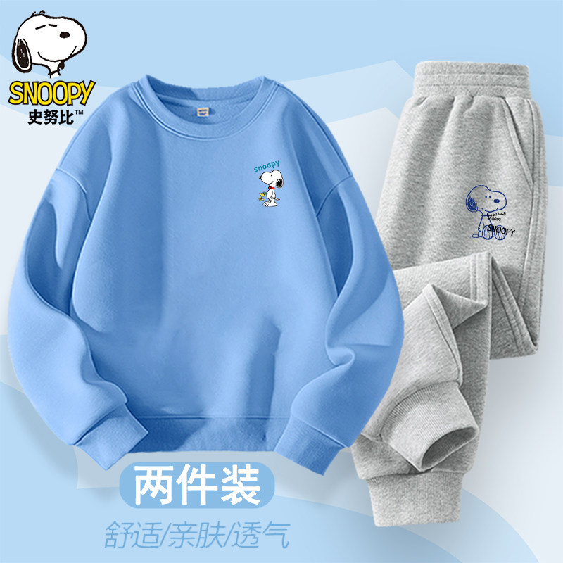 史努比男童春秋新款舒适韩版卫衣套装2026新款百搭卫裤2件套潮流