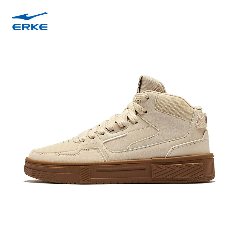 契约3鸿星尔克板鞋女冬季新款厚底女鞋皮面学生休闲鞋高帮运动鞋