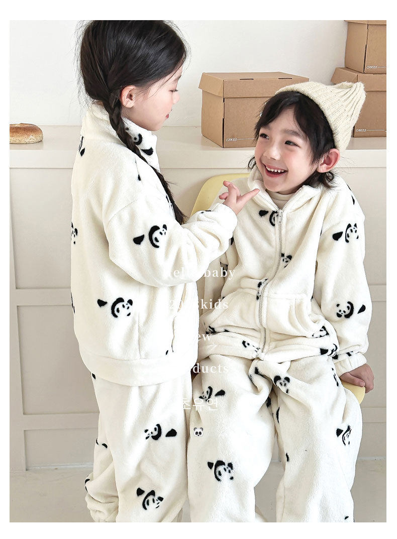 儿童秋冬睡衣长袖长裤套装情侣家居服亲子珊瑚绒卡通两件套可外穿