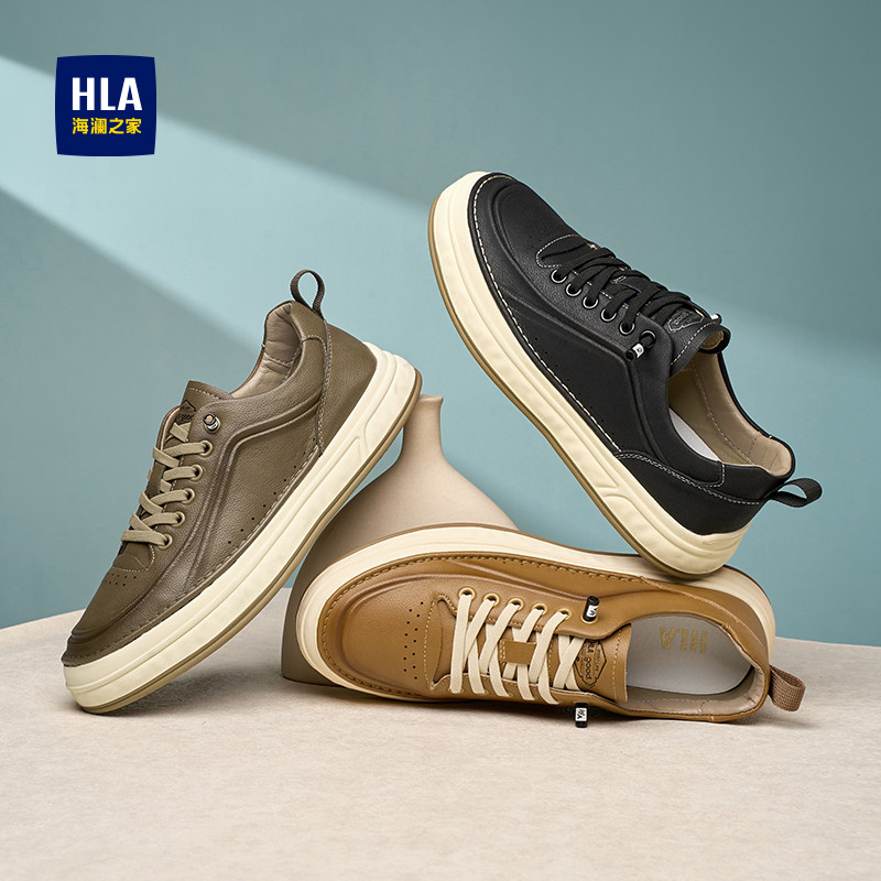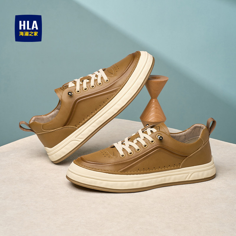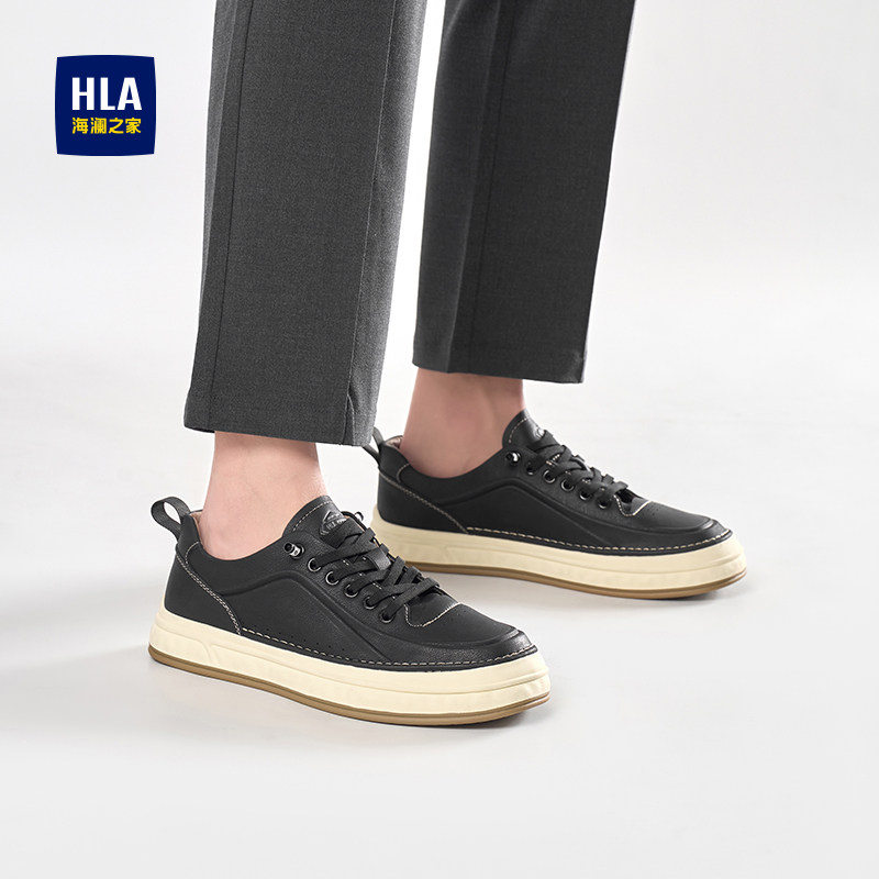 HLA/海澜之家男鞋新款秋冬真皮男士商务板鞋经典时尚免系带休闲鞋