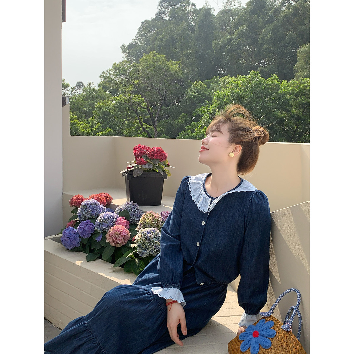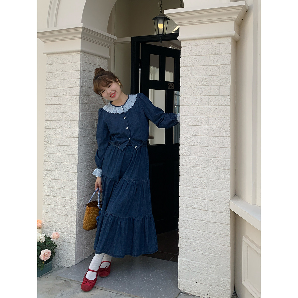 米米子微胖大码胖mm 清新时尚气质别致独特牛仔上衣半裙两件套装