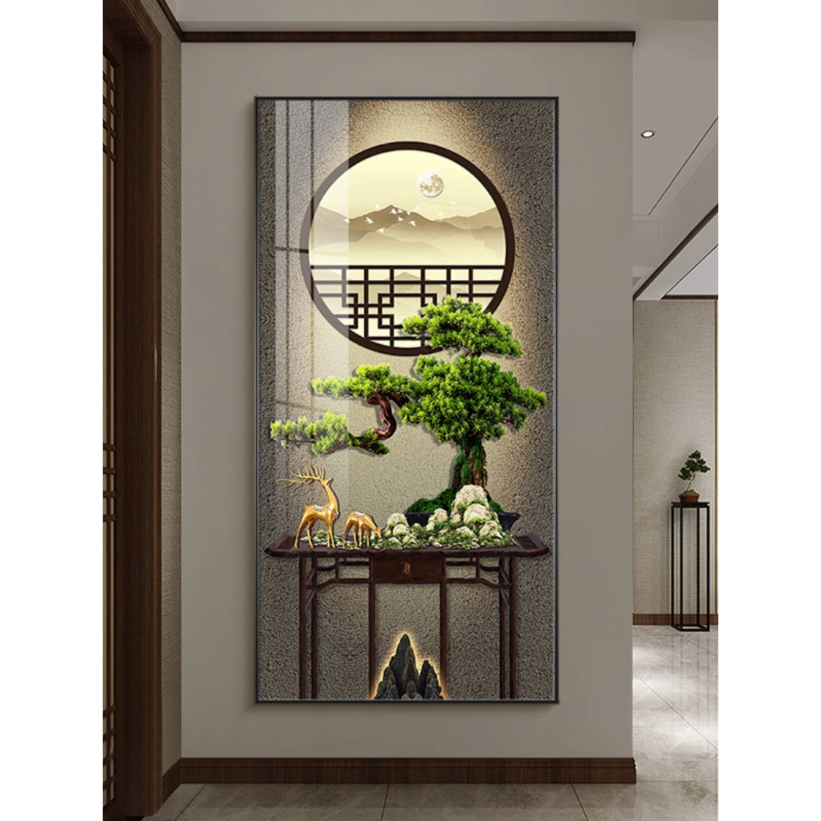 流水生财玄关装饰画新中式入户壁画客厅大气招财挂画禅意森林墙画