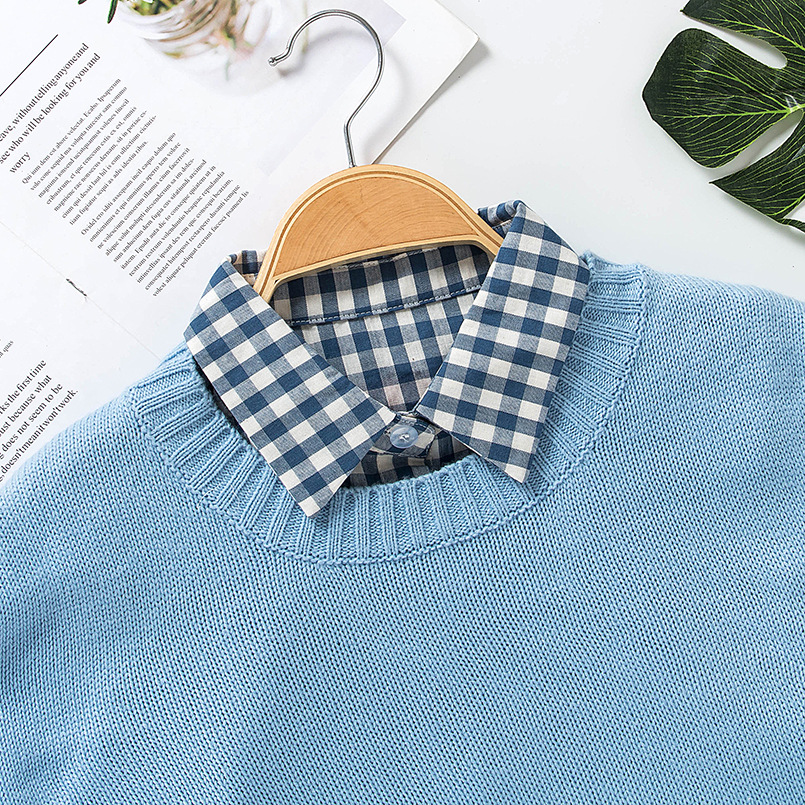 装饰领子女秋冬百搭纯棉衬衫领假领子格子衣领尖领粉色男女内搭