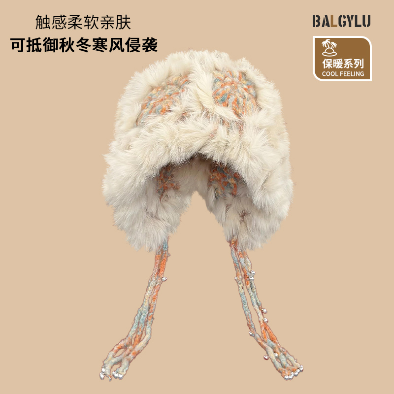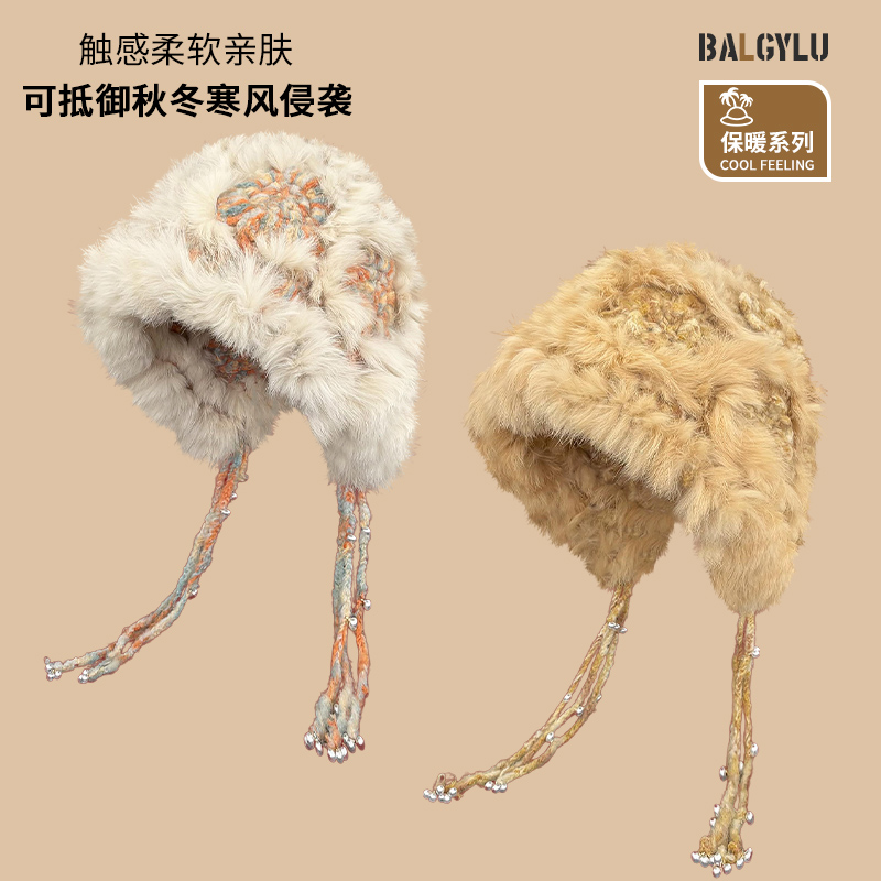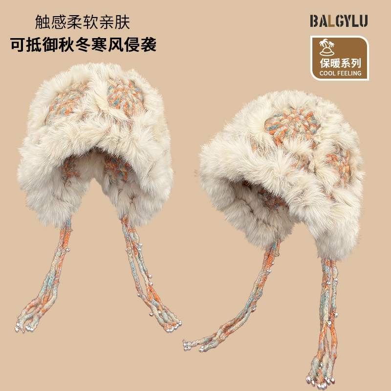 兔毛帽子女秋冬韩版显脸小毛绒帽