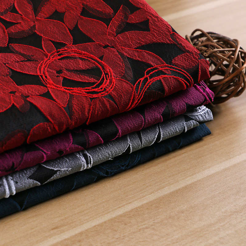 亚麻服装 仿麻提花面料 经典五瓣花提花女装面料 1600