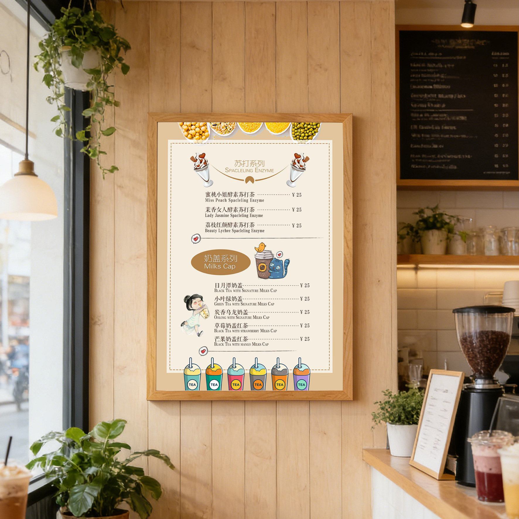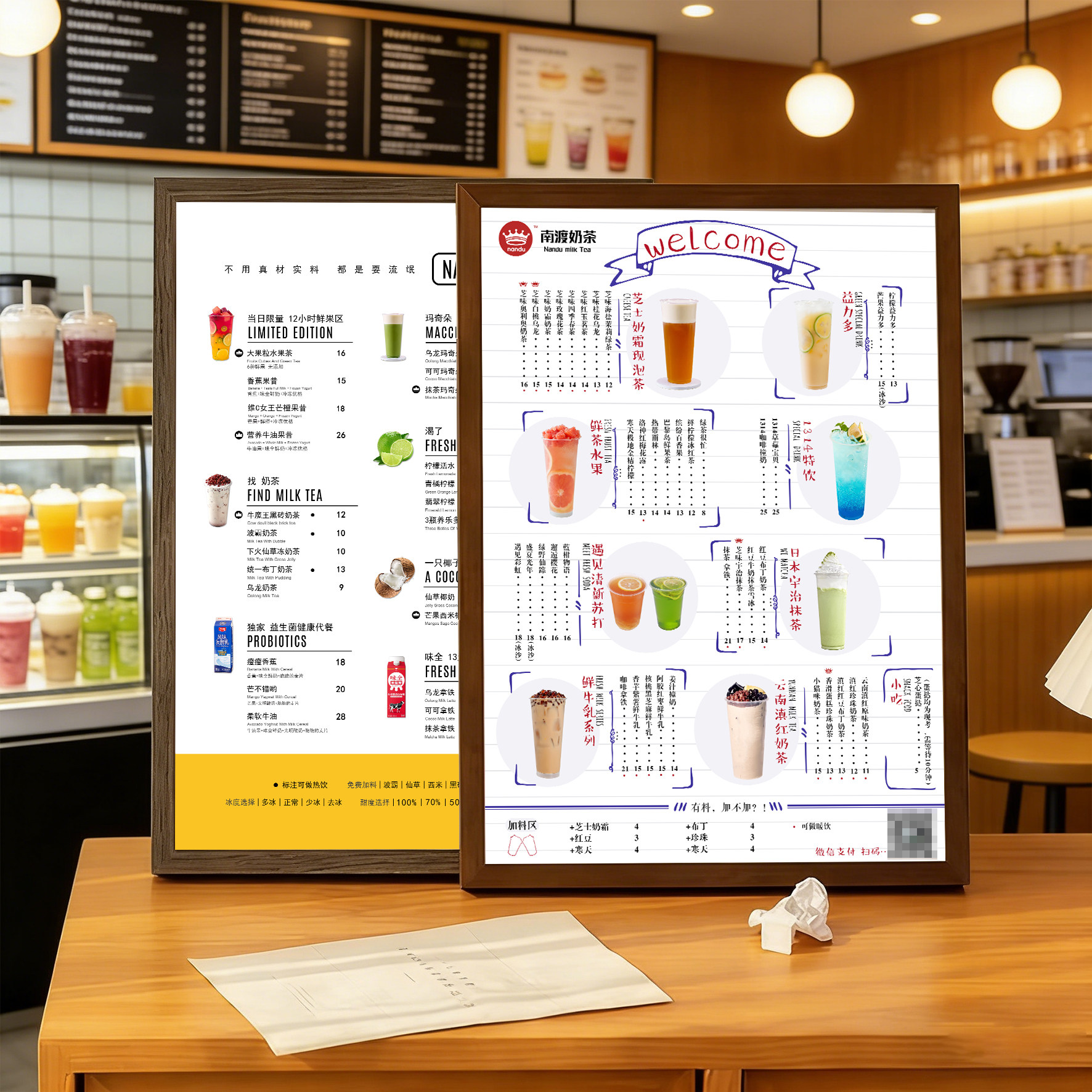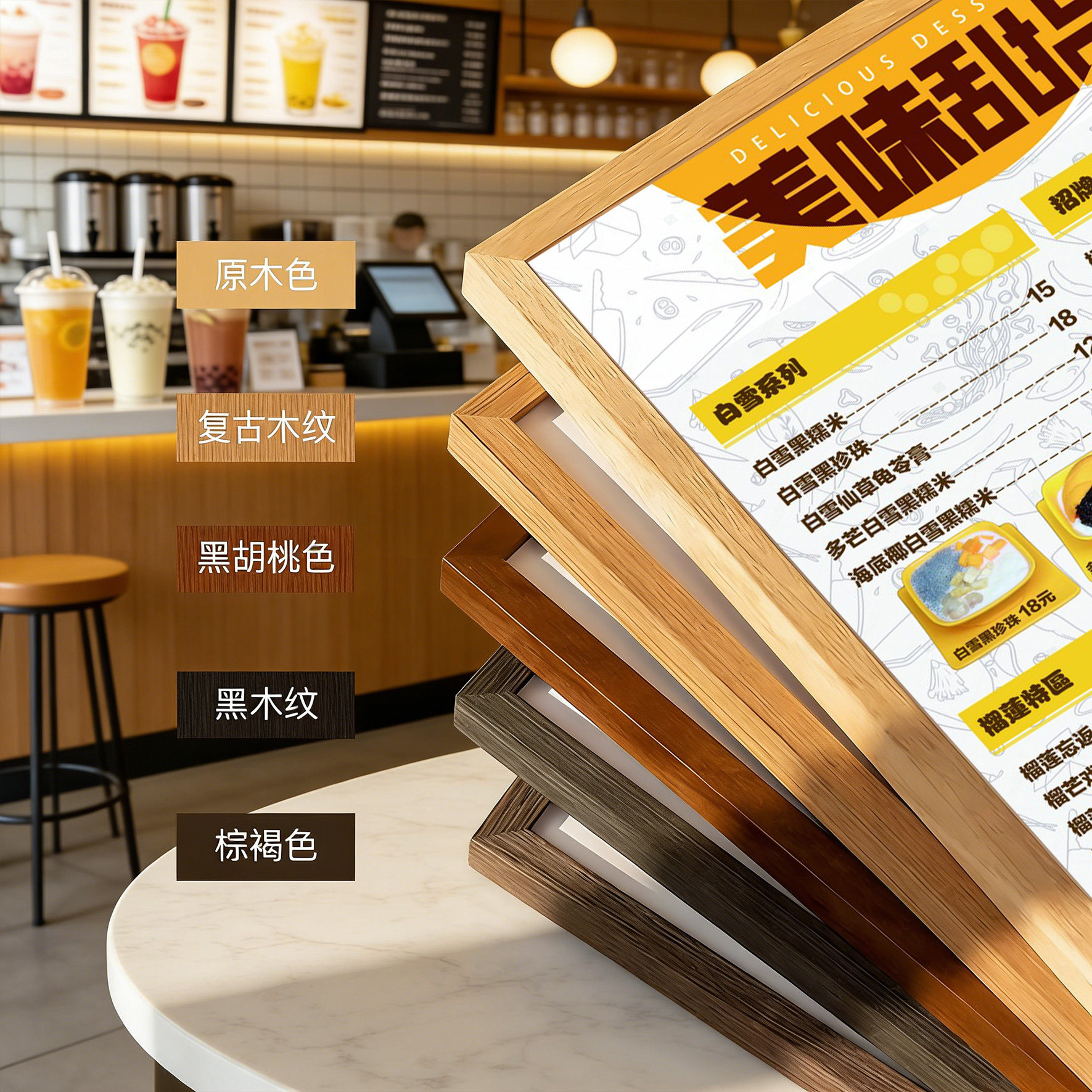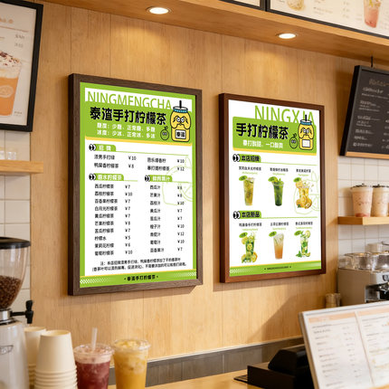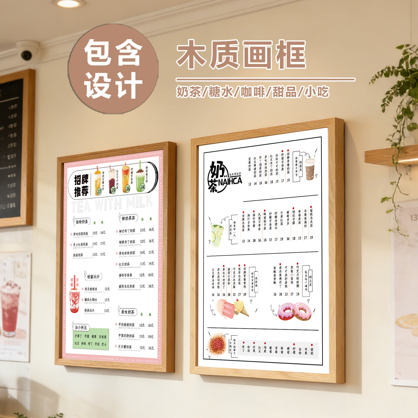 奶茶店价目表咖啡奶茶甜品饮品菜单简约木质相框挂墙挂画设计制作