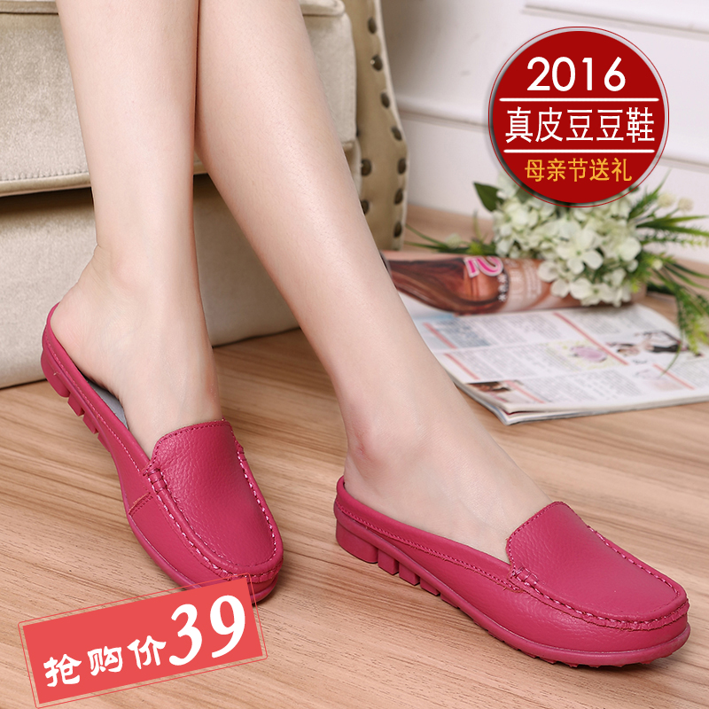 春季新款大码女鞋包头牛皮懒人鞋