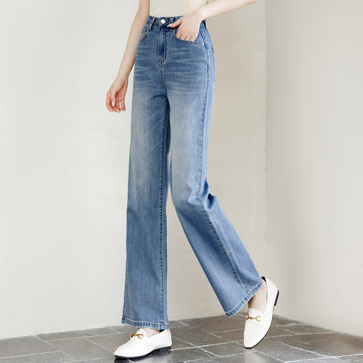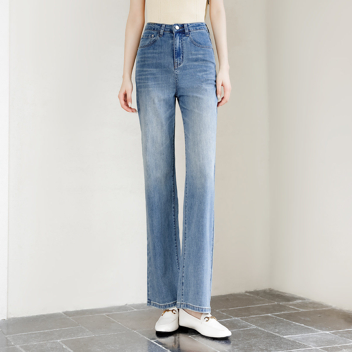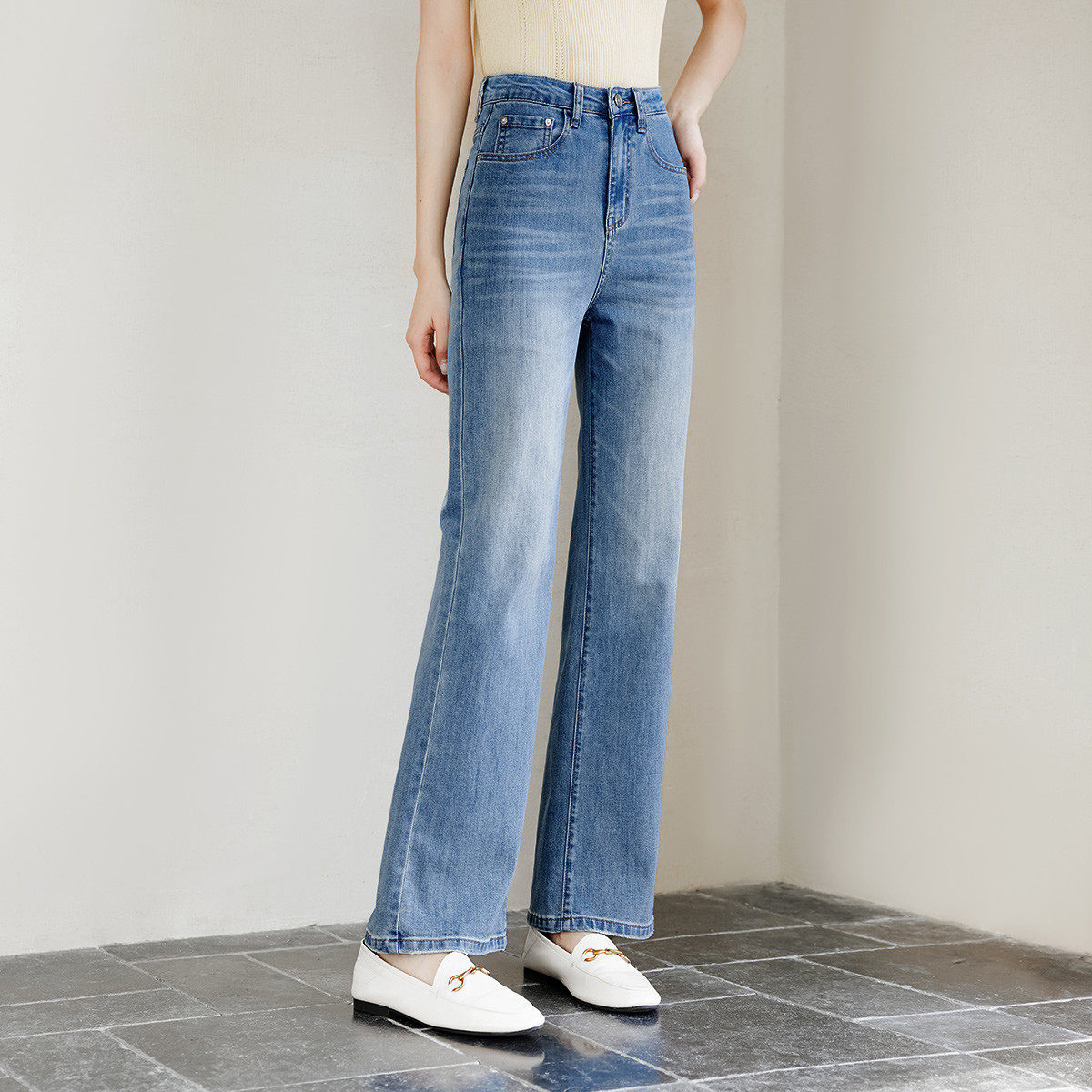 茵曼2025冬季新款美式加绒加厚牛仔裤女直筒高腰显瘦休闲九分长裤
