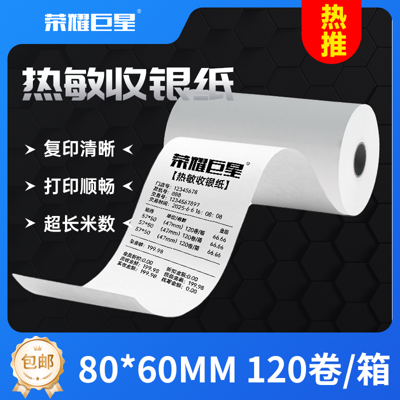 淮星荣耀巨星80x60收银纸80mm卷式热敏纸80*60mm打印纸叫号机厨房点菜宝纸打印纸
