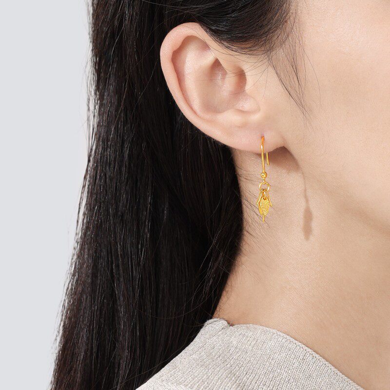 周生生Essence永系列珠宝黄金耳环足金叶子耳坠黄金耳饰女40535E
