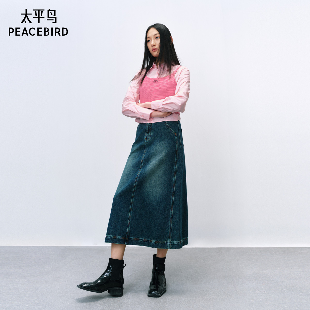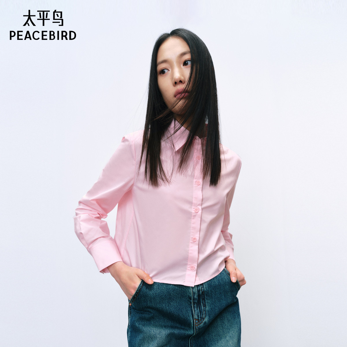 太平鸟女装2024春季款短款两件式时尚休闲衬衫上衣外套女