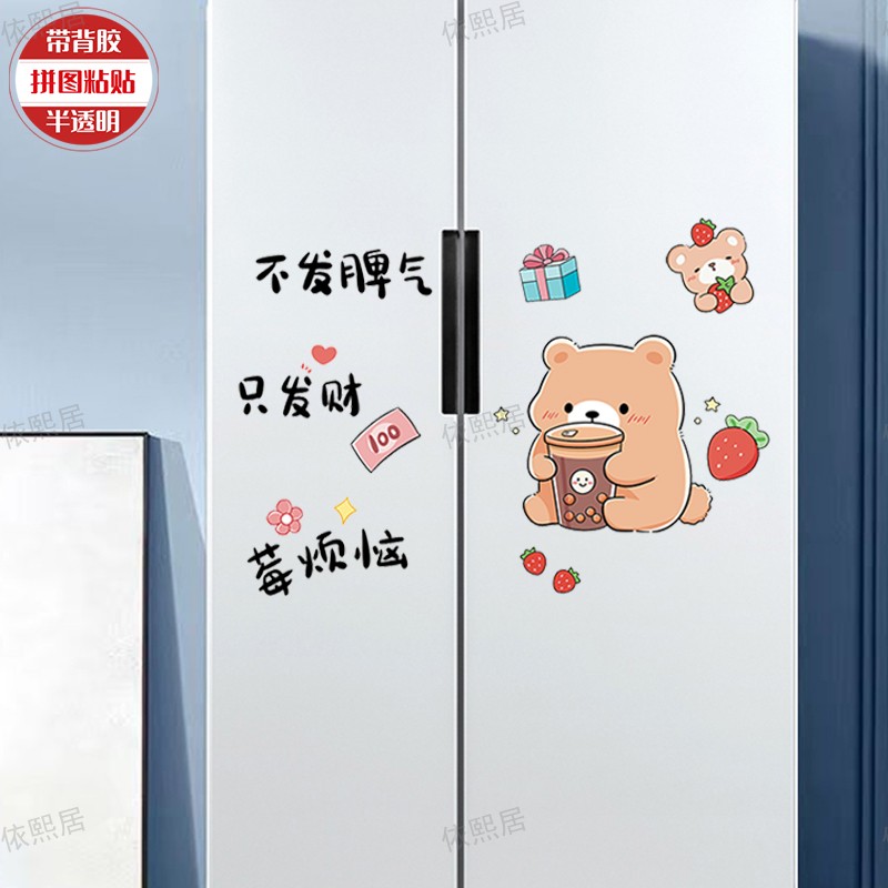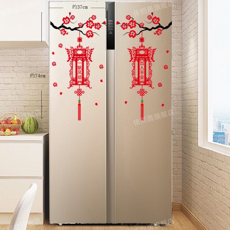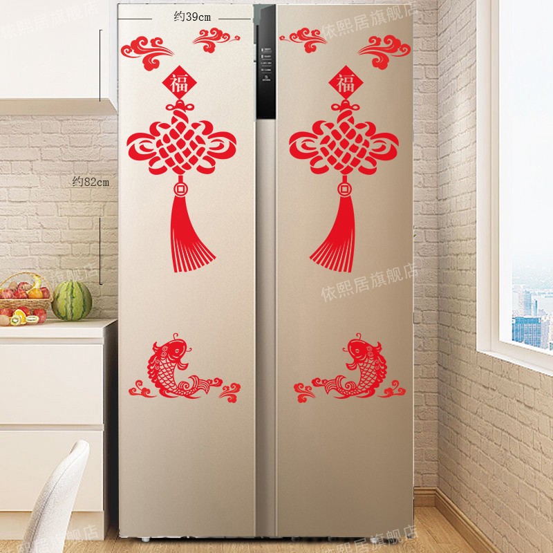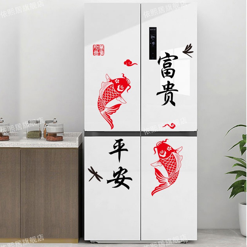对开冰箱贴纸自粘新中式装饰双开门冰箱贴画创意锦鲤鱼喜庆防水