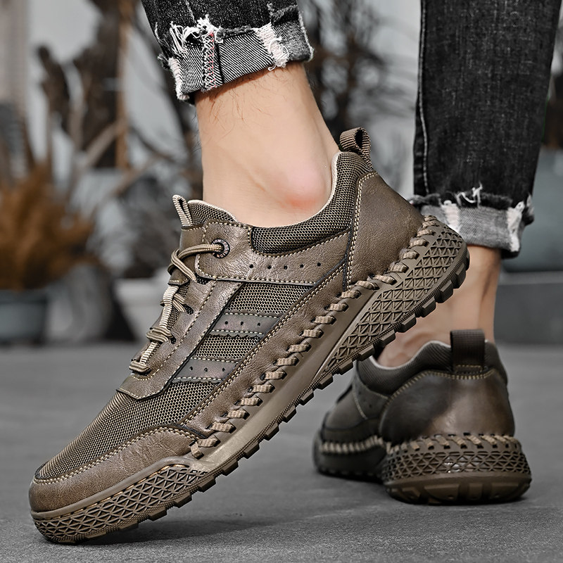 LVZDN原单高档真皮夏季男士运动休闲皮鞋网布透气百搭旅游鞋子男