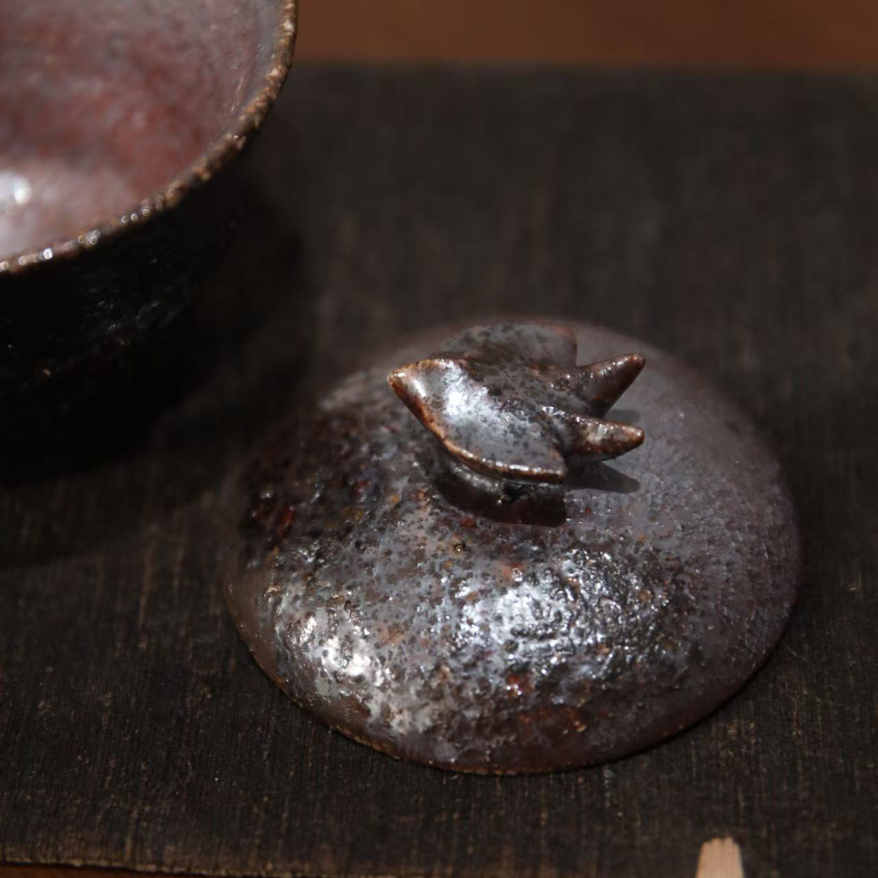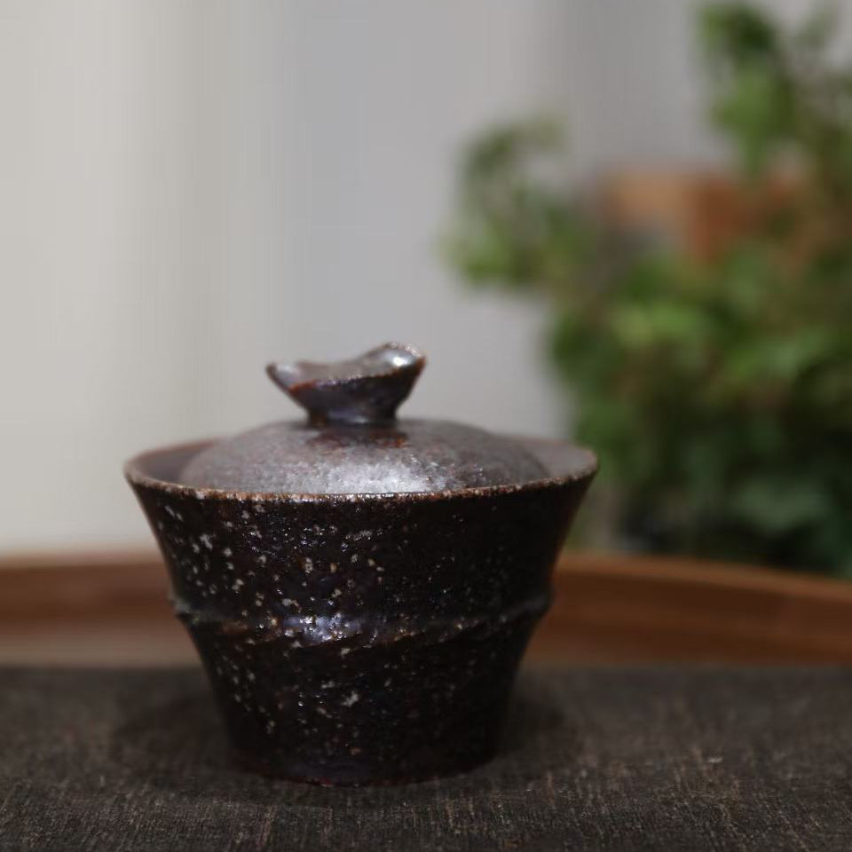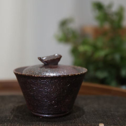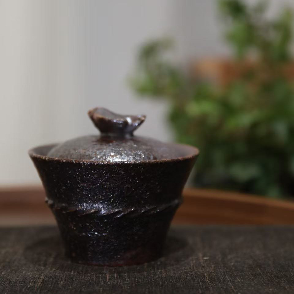 林连手作柴烧小金鹊盖碗茶杯茶壶个性创意裸烧自然落灰粗陶泥