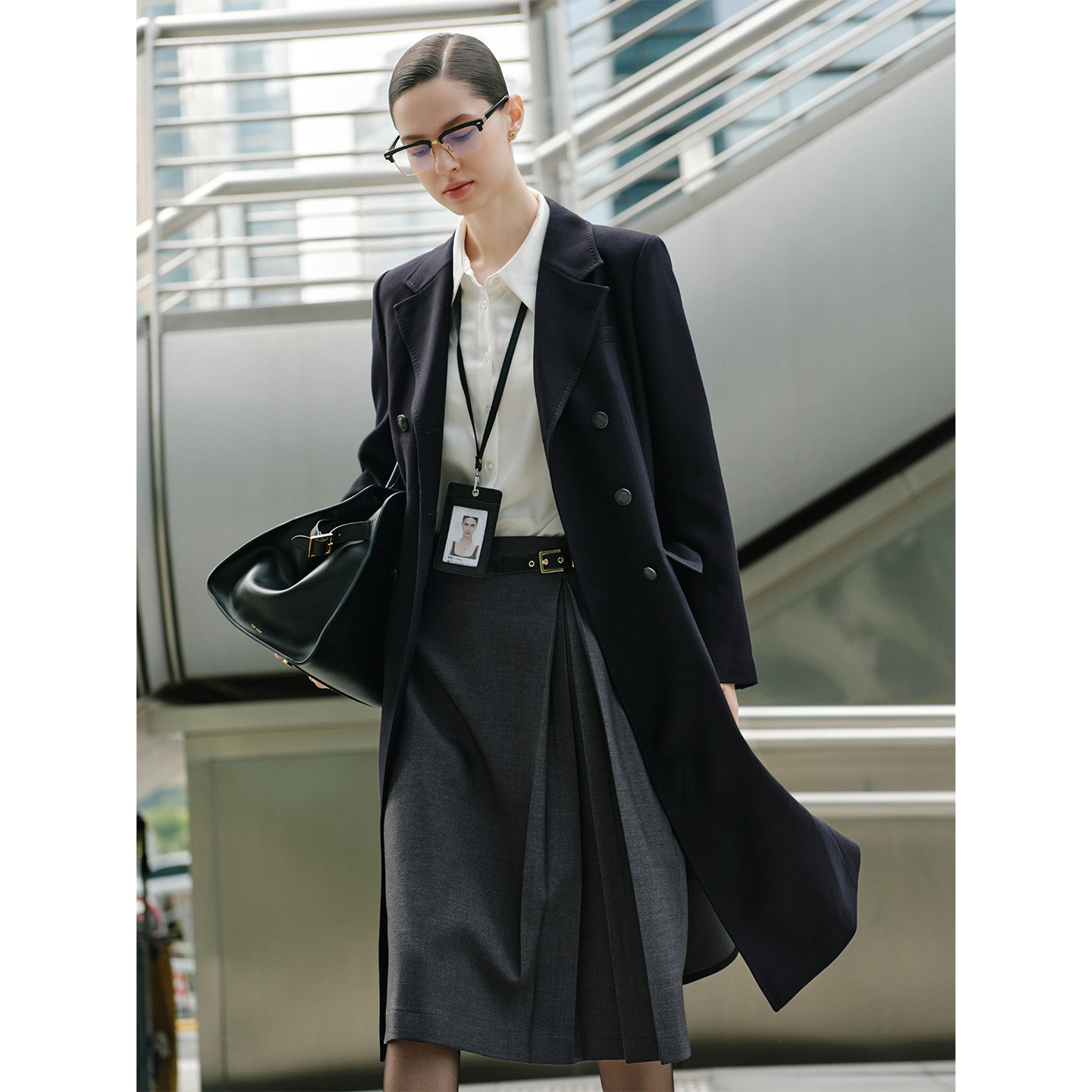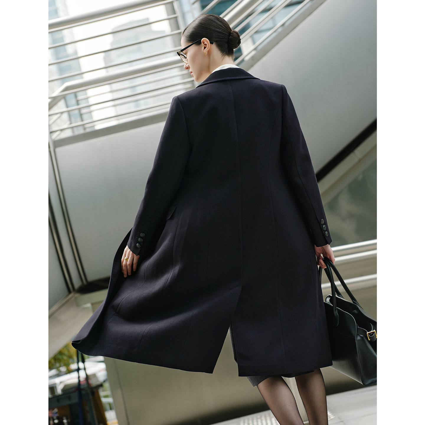 GIOVANNI VALENTINO羊毛呢子大衣女士秋冬宽松中长款翻领风衣外套