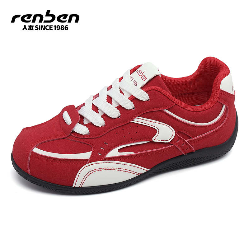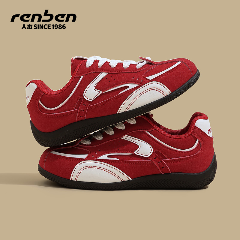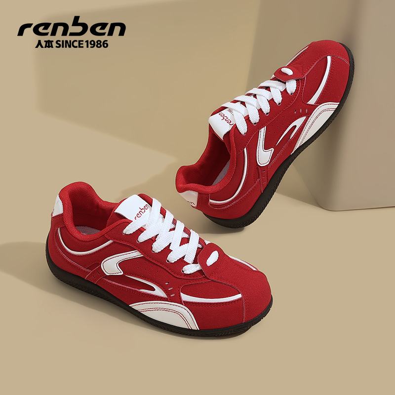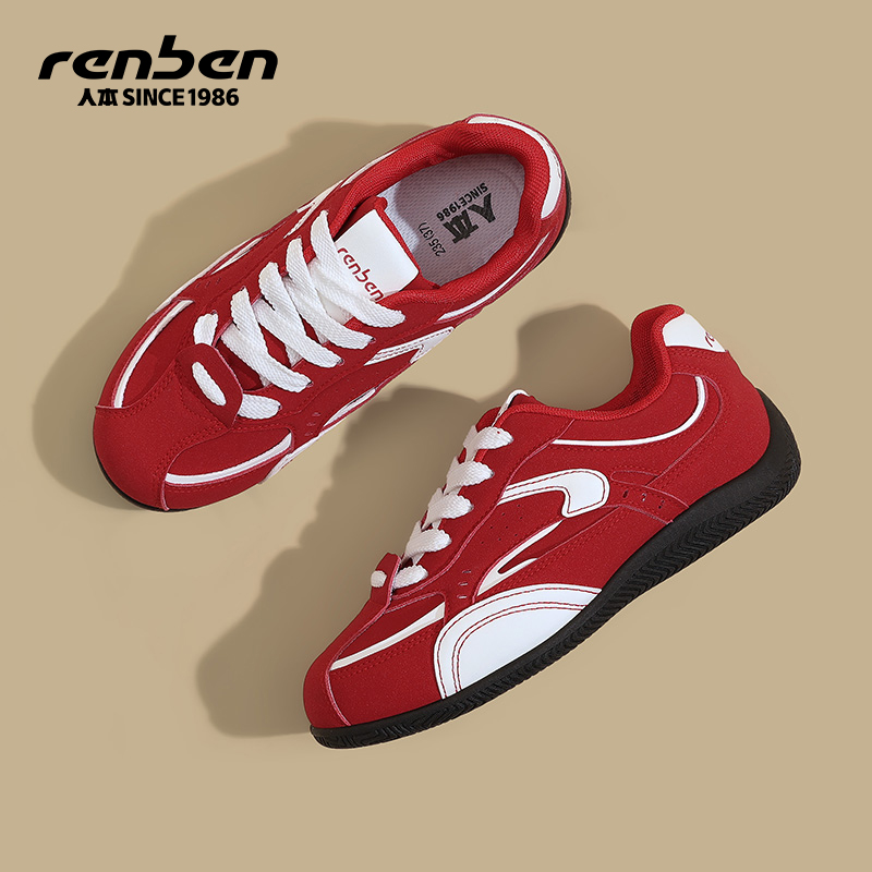 人本德训鞋女2025春秋季新款红色韩系平底时尚百搭学生运动休闲鞋
