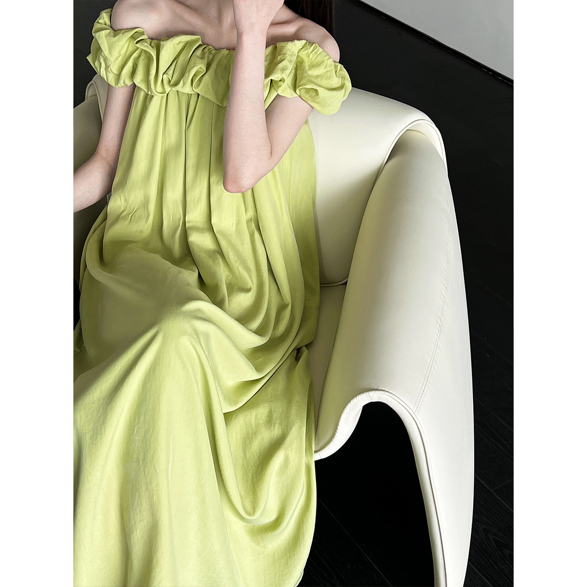 云想 天丝面料一字肩抹胸连衣裙韩系级感荷叶边吊带背心裙3230