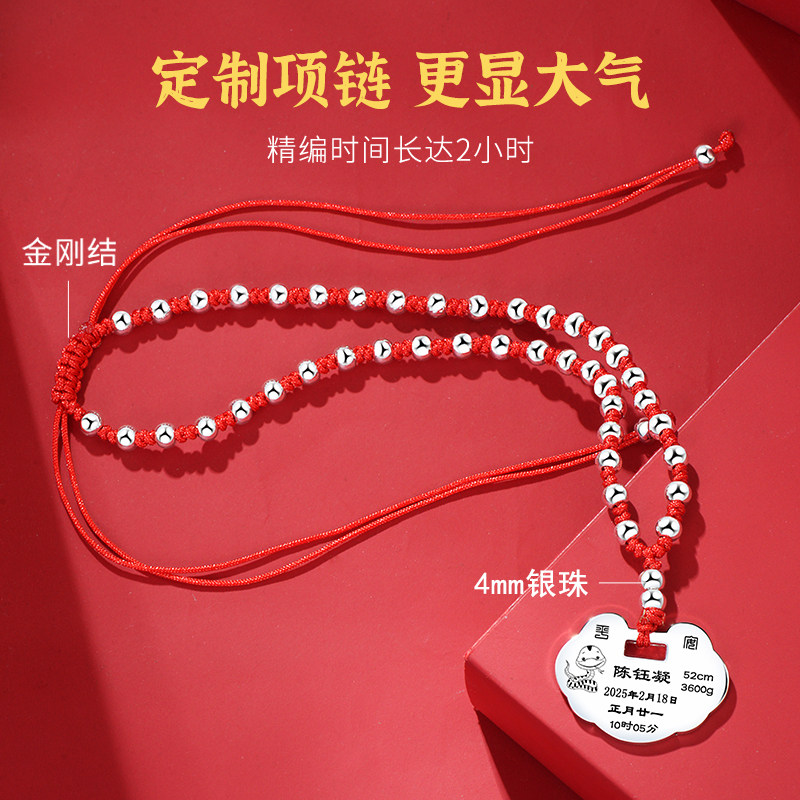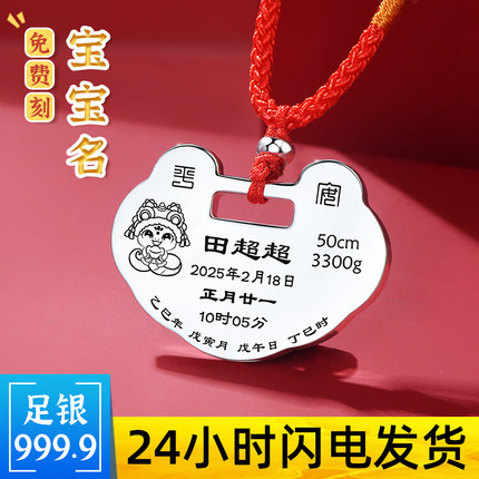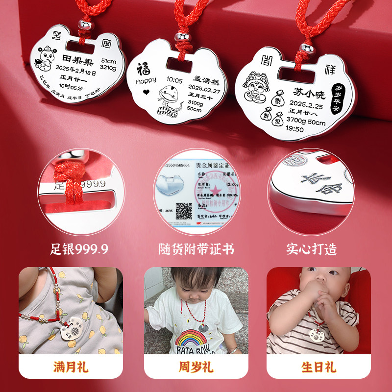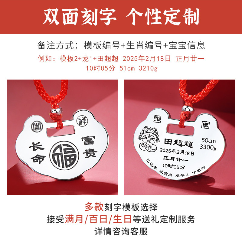 长命锁宝宝纯银9999定制银锁婴儿龙蛇年吊坠小孩银饰满月周岁礼物