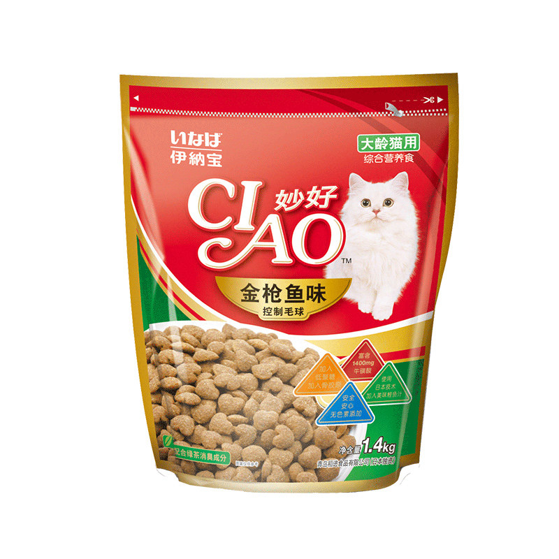 老年猫粮 伊纳宝妙好老猫大龄猫室内成猫粮金枪鱼味去毛球1.4kg