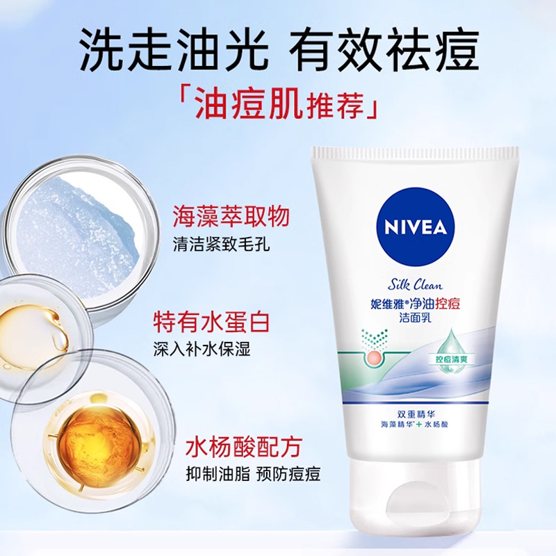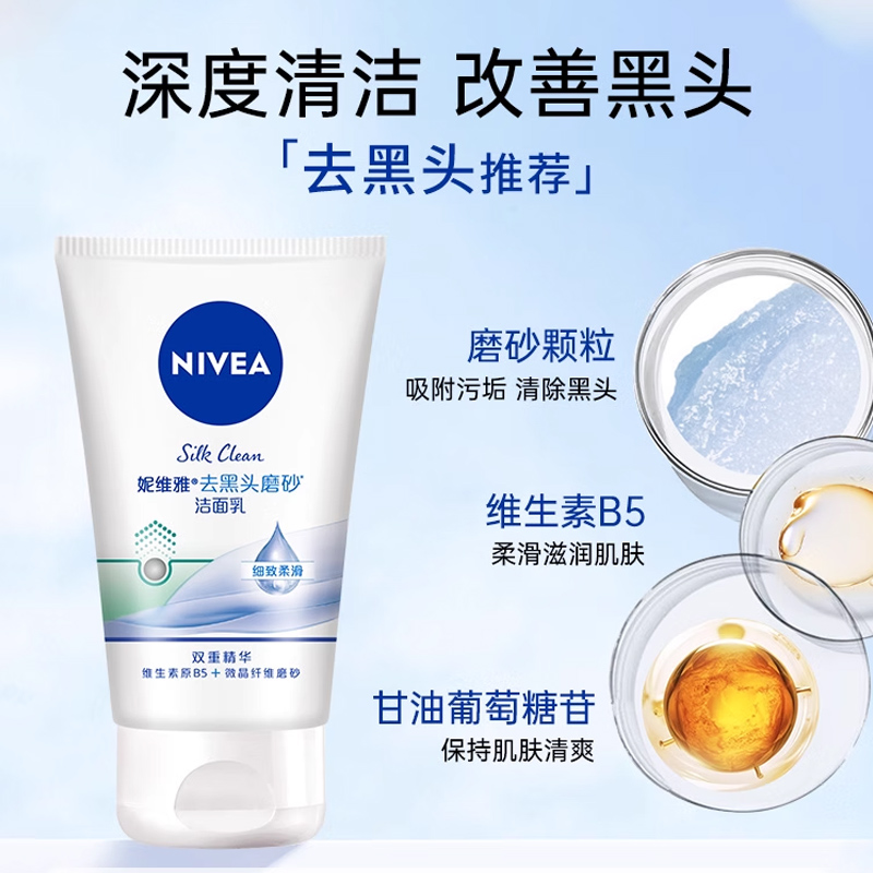 妮维雅洗面奶控油祛痘深层清洁磨砂去黑头洁面乳男女通用官方正品