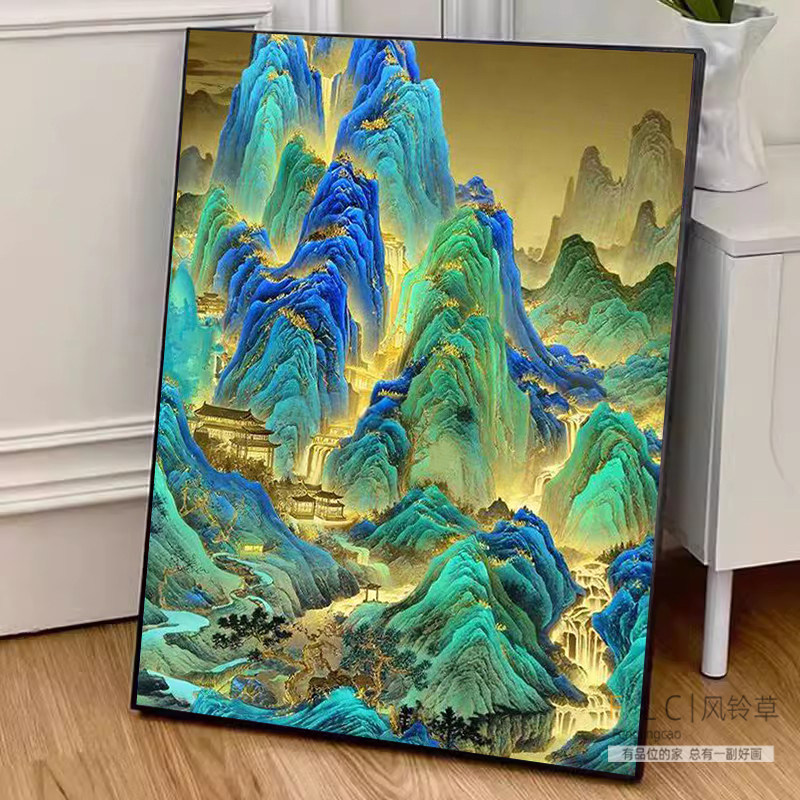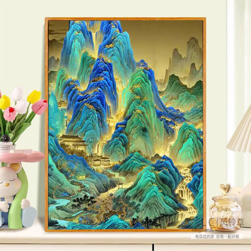 玄关带框千里江山5d钻石画满钻2026新款客厅粘钻石贴十字绣风景