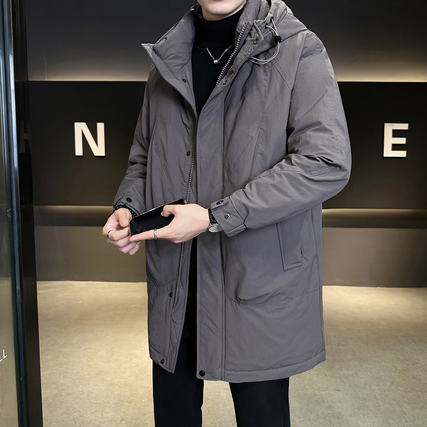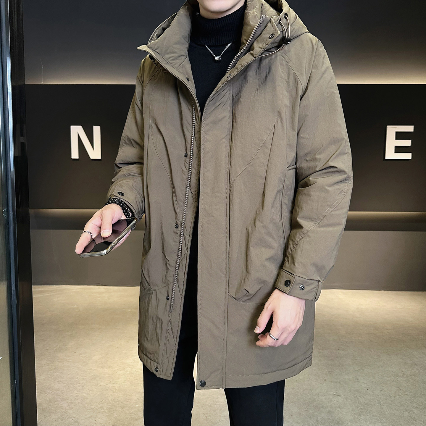 中长款男士羽绒服冬季2025新款连帽加厚高级感潮牌男冬装风衣外套