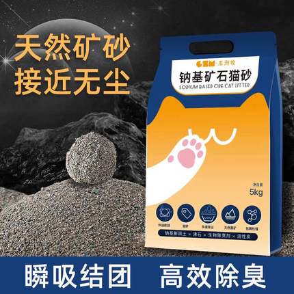 天然钠基矿石猫砂10斤低尘矿砂活性炭除臭吸水结团矿石膨润土猫砂