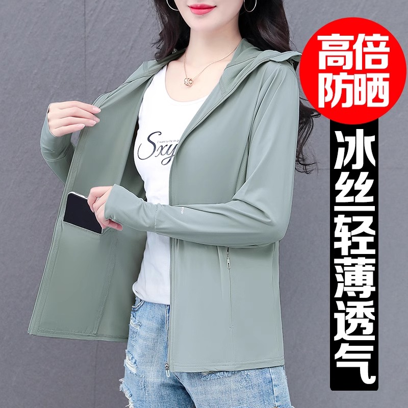 黑色冰丝防晒衣女夏季2024年新款防紫外线休闲百搭轻薄透气皮肤衣