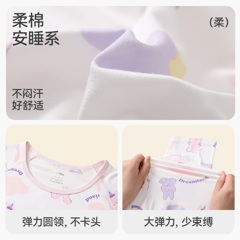 久岁伴儿童睡衣女童春夏季防着凉护肚薄款空调服中小童家居连体衣